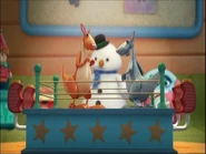 Angus is a toy kangaroo and part of a Karate Kangaroos game with his friend Sidney. He also appears to be a nurse at the McStuffinsville Toy Hospital.