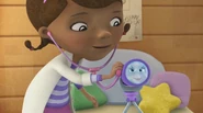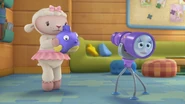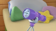 Aurora is a telescope belonging to Henry, who speaks in 60's hippie lingo and walks on her tripod. She loves exploring the world and galaxies. The night Aurora came out of the box, her vision was strangely blurred, and Doc led a search of Henry's yard to find Aurora's missing eyepiece.